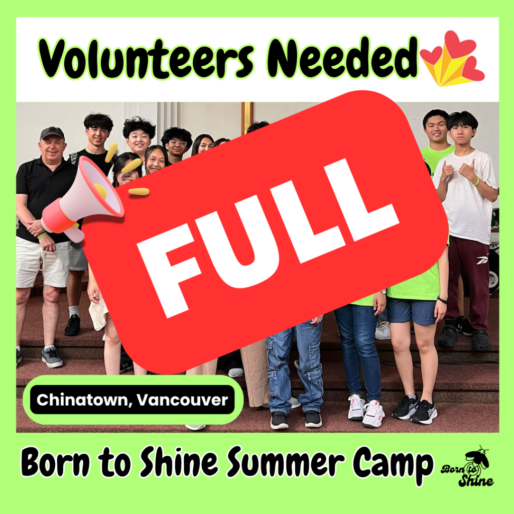We have enough volunteers now! Thank you for those who signed up to volunteer for Born To Shine Summer Camp 2025! Can’t wait to spend time together with our team of camp leaders and kids!
